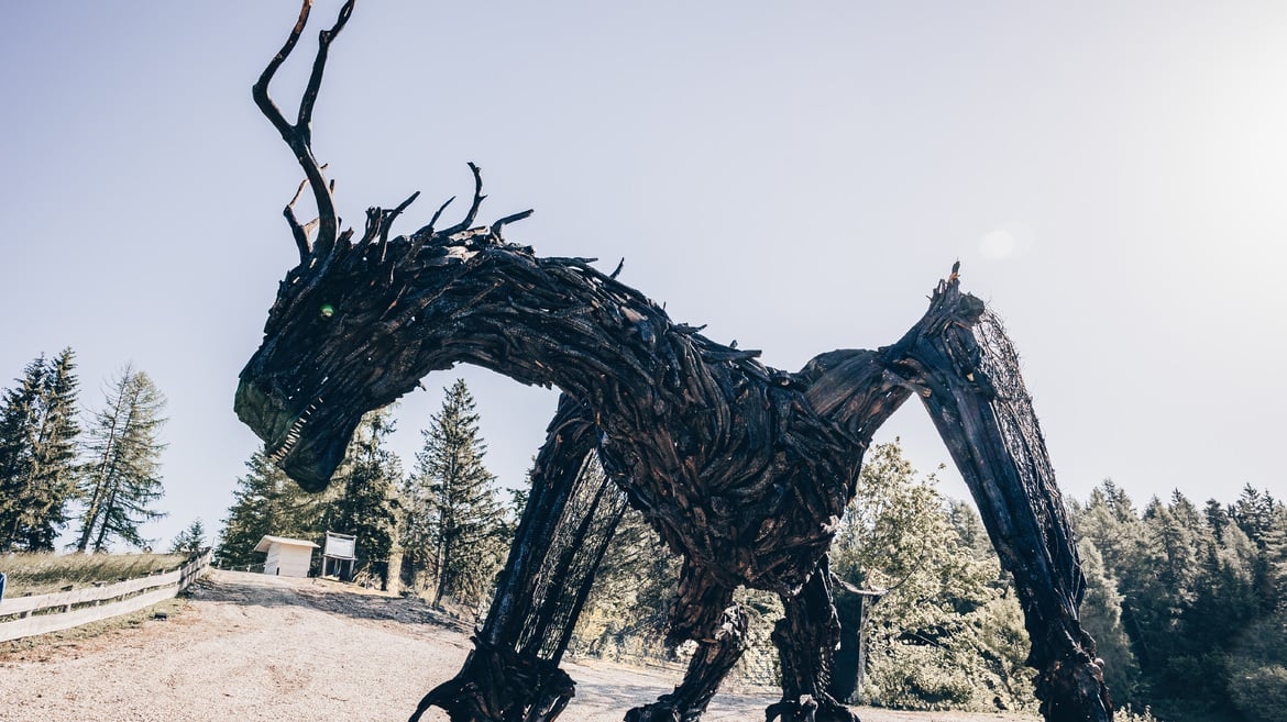 Die Realisierung von Marco Martalar dominiert die Wälder der Alpe Cimbra von Lavarone und ist der Schlüsselpunkt des thematischen Weges namens "Lavarone Green Land", der andere überraschend Installationen beinhaltet.