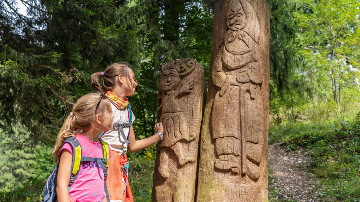 Der Weg des Imaginären ist eine wunderschöne Route durch die Wälder und Weiden von Luserna, inspiriert von den Legenden und Charakteren der zimbrischen Volksphantasie wie Frau Pertega und Tüsele Marüsele.