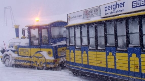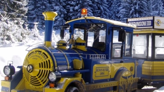 Ein Zug mit Gummireifen verbindet Folgaria mit dem Ortsteil von Costa und umgekehrt.