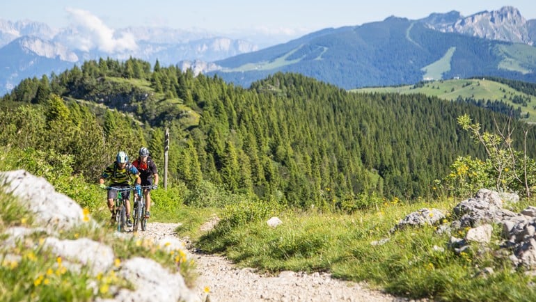 Erkunden Sie eine der größten Almen Europas in der Region der Cimbri im Trentino: Atmen Sie die Geschichte und Traditionen einer spektakulären Berglandschaft ein, bewundern Sie die vielfältige Biodiversität der Alpenregion und genießen Sie die majestätischen alpinen Seen. Das ist das Alpe-Cimbra-Bike-Erlebnis – Folgaria, Lavarone, Lusérn und Vigolana. Mit über 600 Kilometer Mountainbike-Strecken, die bis zum nahe gelegenen Gardasee und den Seen Levico und Caldonazzo führen, bietet es Möglichkeiten für alle Disziplinen wie All-Mountain, Enduro, Cross Country sowie Downhill und Gravity im Bike Park von Lavarone und dem neuen Trail Center FolgaRide, das am 1. Juli in Serrada di Folgaria eröffnet wird. Hier erwarten Sie ein Bike Park, eine Pumptrack und ein Mini Bike Park für Kinder von drei bis sechs Jahren. Auf zehn Kilometer flowigen Trails erleben Sie aufregende Abfahrten mit einem großartigen „Flow Feeling“. Die Routen führen durch den Wald mit zahlreichen Kurven, Sprüngen und ständigen Auf- und Abstiegen.