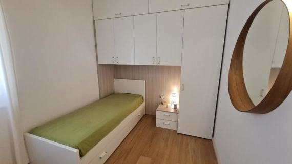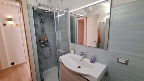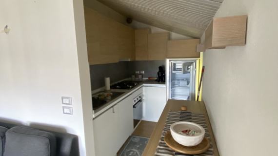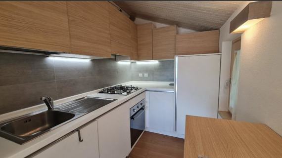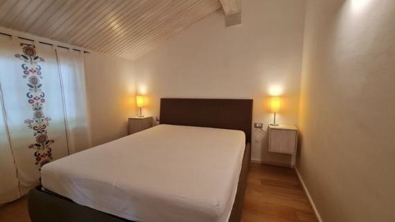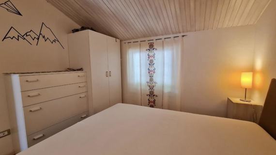 Apartment Dachgeschoss von ca. 60 qm, kürzlich renoviert, bestehend aus zwei Zimmern, einem Doppelzimmer, einem mit einem Einzelbett und einem Klappbett, Bad mit Dusche, Wohnzimmer mit einer Schlafcouch, eine Fensterfront mit Blick auf einen kleinen Balkon mit Seeblick, Kochnische voll ausgestattet.