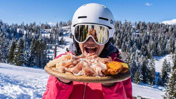 Aber die Berge bieten nicht nur Schnee. Sie bieten auch Genuss. Nach einem Tag auf den Skiern erwartet Sie die herzliche Gastfreundschaft des Trentino mit Gerichten, die von Tradition, unverfälschten Zutaten und den Düften der Alm erzählen.