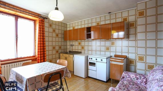 Wohnung von ca. 50 m2 im ersten Stock in Folgaria. Küche mit Herd, Kühlschrank und Backofen. Ein Schlafzimmer mit Doppelbett und ein ausziehbares Bett im Wohnbereich. Badezimmer mit Waschmaschine. Parkplatz und Skiraum.