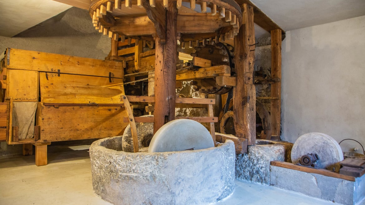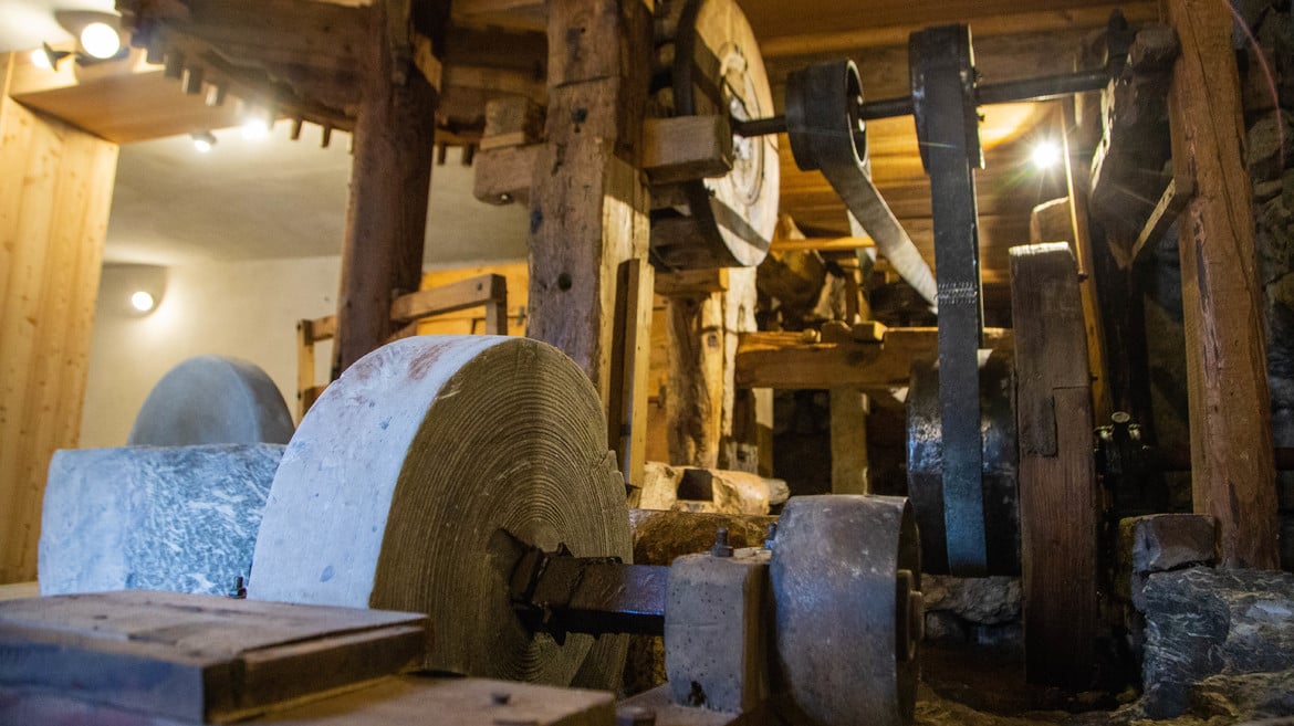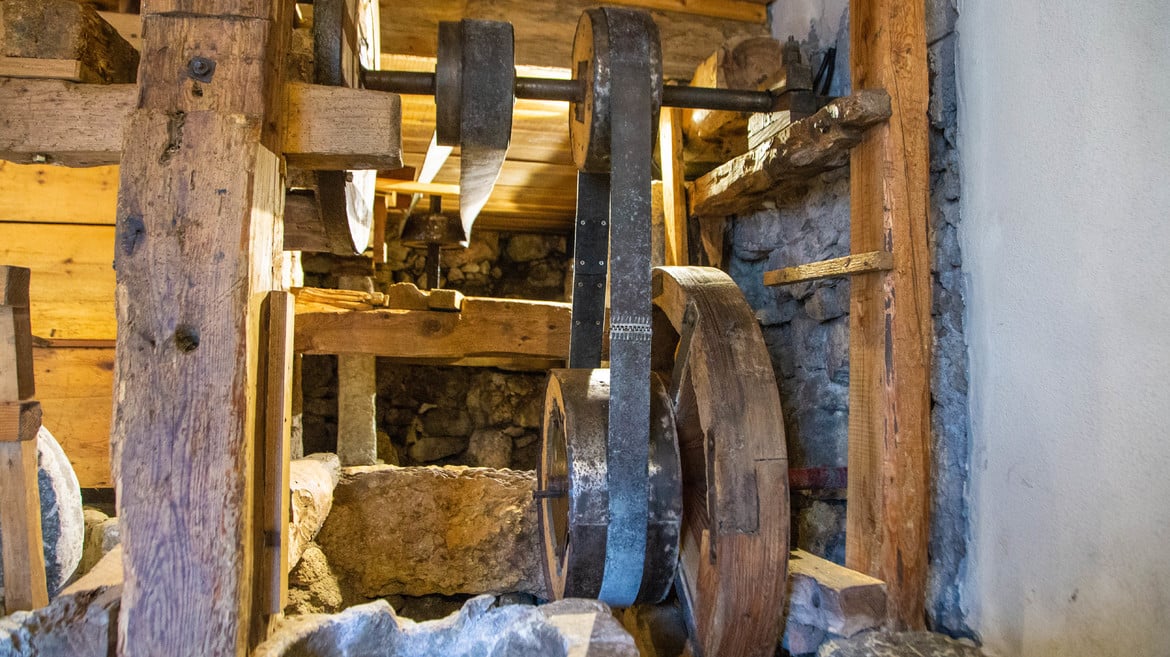 Driven by the waters of the stream Rio Cavallo, the mill Rella – Hofbach dates back to the late eighteenth century (1797), even though its origins are even more ancient. It is a complex structure, which suffered alteration and structural changes. The building consists of a mill with millstones, and a tool for husking. Beside the transmission gears for the waterpower, the mill features an unusual water distribution system made of pulleys and leather belts. A big, wooden waterwheel on the east side of the mill conveys the hydraulic power towards the inside of the mill through a horizontal board, which connects it to the millstone and the husking tool. Both tools were used for husking barley and oats. Before falling into disuse, the husking tool also served to grind fir bark. The grain mill was composed of a hopper, a mobile- and a fixed millstone (both enclosed into a crate). The water is taken from the stream and channeled to the mill via a 110-meter-long canal, by which a small washtub was built in the past. The canal led to a smaller pipe, which pumped water straight into the boxes on the wheel and, consequently, made it move. The mill Rella remained active until 1950, and miller Dario Rella would live there until 1994. Later on, in 1998, the Municipality of Folgaria acquired the building and renovated it in 2013, thanks to the Program for rural development of the autonomous province of Trento. In 2020, an educational path was planned and could finally be opened in 2021.