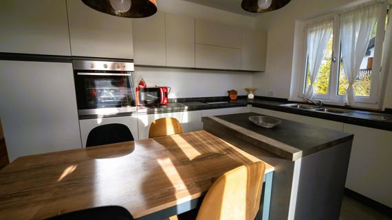 from the ski lifts, recently renovated. Composed of a modern kitchen equipped with a dishwasher and oven, a bright living room with wooden flooring, 2 bedrooms (one double and one twin), a spacious bathroom with window and shower, small laundry room.