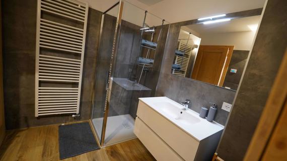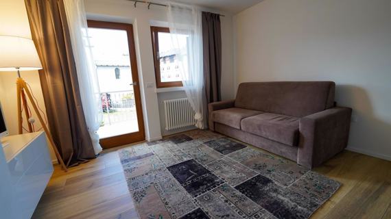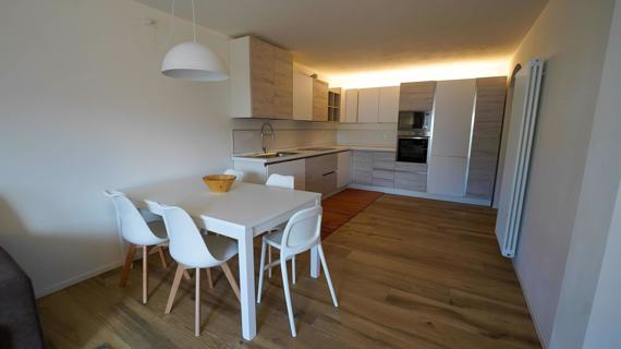 Apartment of about 70 square meters on the first floor in Lavarone in the heart of the hamlet of Gionghi, Residenza Eghel. Living area with living room and kitchen equipped with stove, dishwasher, oven, fridge. A double bedroom, a room with a bunk bed and a double sofa bed. Bathroom with shower and spacious terrace overlooking Monte Cornetto. Carport, laundry and ski storage. Facilitated access for people with disabilities.