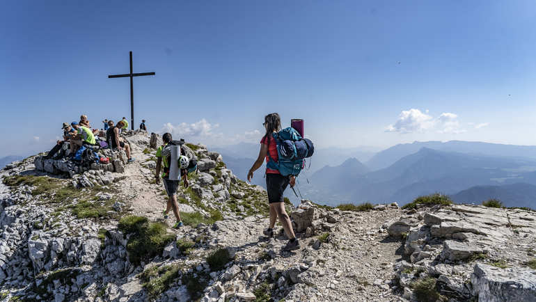 When we arrive at the cross of the Becco, however, we prefer to leave to appreciate more solitary places. A family of chamois watches us not undisturbed but always alert and attentive to our moves. We return to the Sindech Hut following path 442. There is a thousand metres of difference in height. Stones, pebbles, and then undergrowth and paths. These Prealps are great.