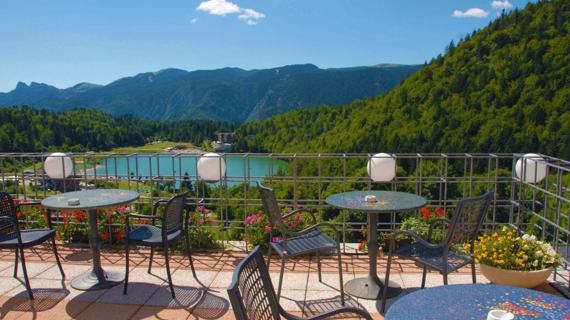 Situated in a beautiful panoramic location overlooking the wonderful Lake Lavarone, it offers a well-equipped wellness center. Full of comfort and cozy spaces, it includes a lobby, a room with TV and game tables, a billiard room, a tavern, a nightclub, a meeting room, a piano bar, a large terrace with a stunning lake view, parking, and a well-equipped beauty farm, which includes: fitness center, multifunctional swimming pool, solarium, Finnish sauna, hot tub, Turkish bath, gym, and indoor squash court.
