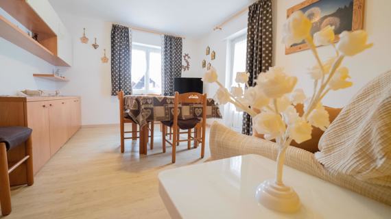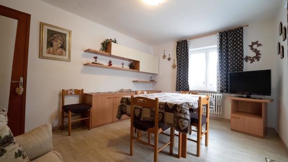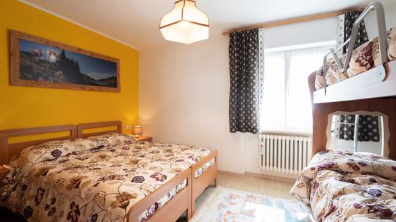 Apartment in Folgaria in a quiet and sunny area. 65 m2 apartment on the first floor, with 2 balconies and a garden available with deckchairs. Kitchen equipped with oven, dishwasher, microwave and coffee machine. A double bedroom and a double bedroom with the addition of a bunk bed. Windowed bathroom with shower and washing machine. The house is quiet and has a garden equipped with relaxing deckchairs for guests. Vacuum cleaner available in the apartment. A parking space and ski and bike storage are available.