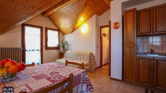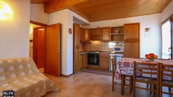 Apartment of approximately 75 m2 on the ground floor with equipped garden in Folgaria, a few steps from the centre. Kitchen equipped with burners, oven, fridge and dishwasher. Three bedrooms, two double bedrooms and a room with a bunk bed. Bathroom with shower and washing machine. Parking space and ski and bike storage