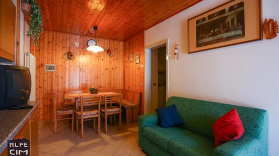 Apartment of approximately 65 m2 on the ground floor in Folgaria, a stone's throw from the centre. Kitchen with oven, hob, fridge. Two bedrooms, one double and one twin. Bathroom with shower and washing machine. Courtyard equipped with table and seats and, parking space and ski storage.