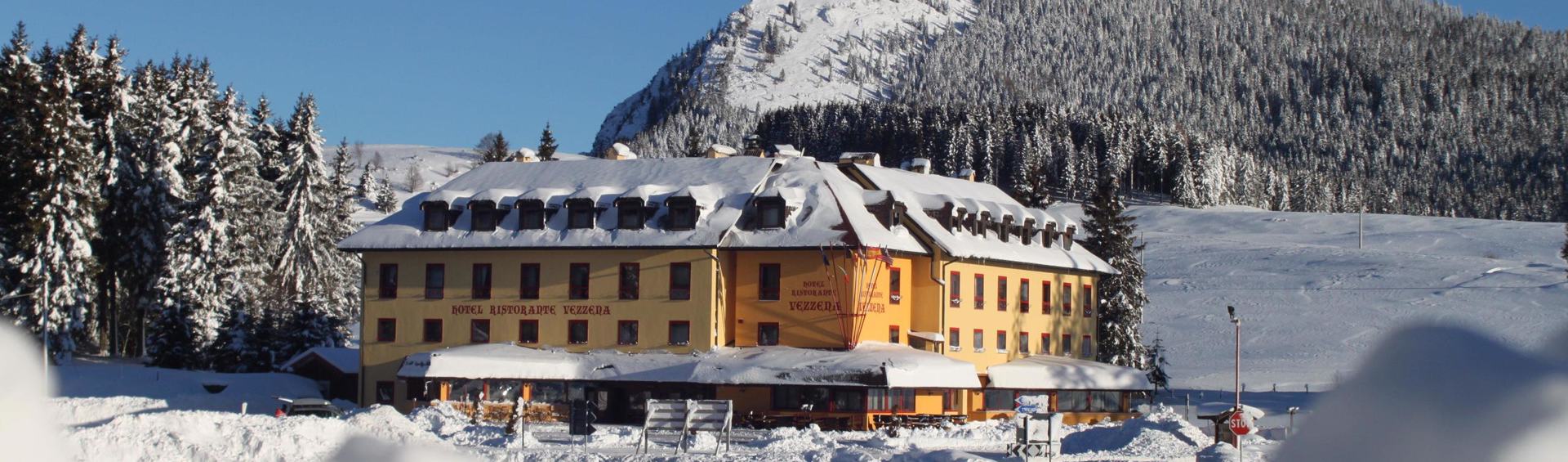 Hotel Vezzena, situated at 1404 meters asl in a fresh and dry climate, is surrounded by a breathtaking nature. In front of our hotel you can find the ski slope, the ski lift and the ski school of Lavarone.