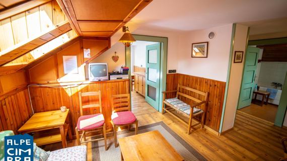 Second floor apartment in a house surrounded by greenery in the hamlet of Serrada in Folgaria in Trentino. Attic apartment on the second floor, of approximately 80 m2 with balcony. Kitchen equipped with oven, fridge, hob and microwave. Three bedrooms, one double, one single and one double. Bathroom with velux, shower and washing machine. Parking space and ski and bike storage