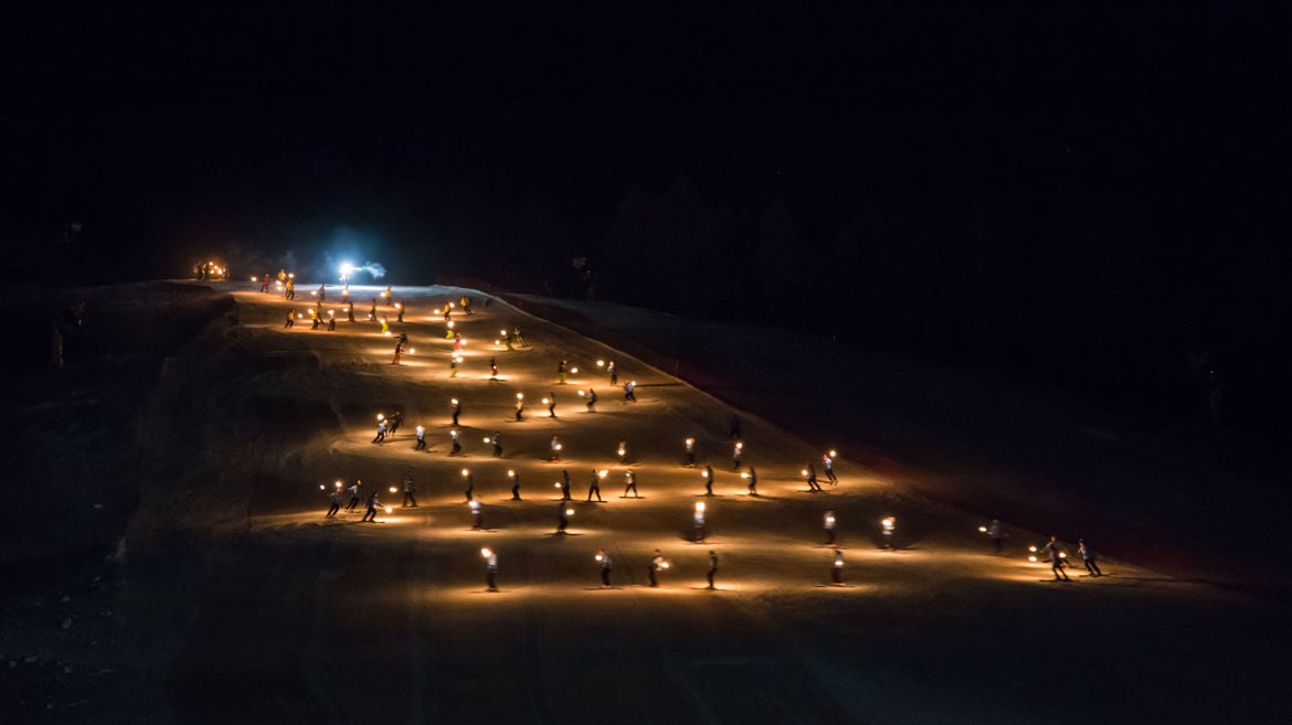 Apres-ski nei rifugi, feste a tema, fiaccolate sugli sci in notturna, nightlife e spettacoli in centro...