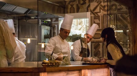"Sarà curioso provare gli abbinamenti di una cucina mediterranea ad alta quota: pesci e crostacei ma non mancherà la carne biologica trentina e la pasta fresca di grano saraceno.