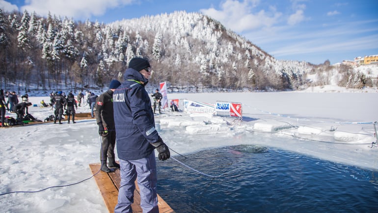 Inoltre, affinché Under Ice possa essere archiviato come un evento suggestivo ed emozionante da vivere in totale sicurezza, ci saranno il DAN Research (organizzazione che conduce ricerche medico-scientifiche sulla sicurezza dell’immersione), il Nucleo Carabinieri Subacquei ed il Nucleo Sommozzatori della Polizia di Stato, IRC Comunità che in una precedente edizione ha donato un defibrillatore alla comunità di Lavarone. Le Immersioni sono affascinanti ma da non perdere il luogo, è veramente incantevole, il Lago di Lavarone è circondato da monti completamente innevati; per chi non è subacqueo ci sono diverse attrattive, paesi tipici, pisce da sci molto ben attrezzate ed innovative, musei storici, etc.