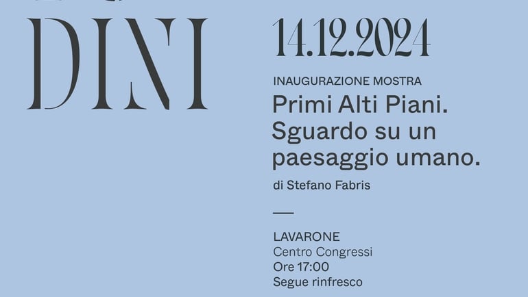 Sabato 14 dicembre alle ore 17.00, presso il Centro Congressi di Lavarone, si terrà la presentazione del catalogo e l’apertura della mostra Primi - alti – Piani.