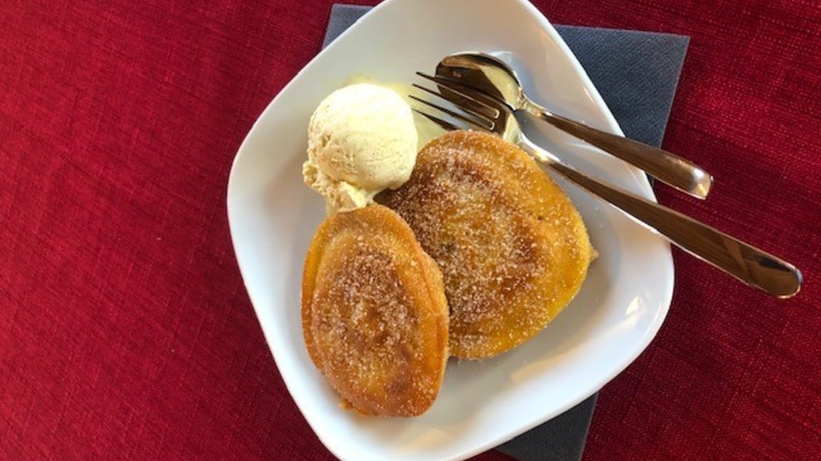 ricoperte di zucchero e cannella con pallina di gelato alla vaniglia secondo la ricetta della Rita del Montana di Luserna