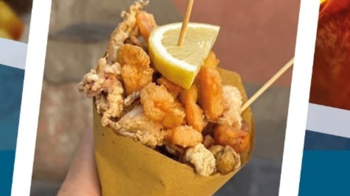 Fritto misto di pesce accompagnato da bollicina Tonini Tn. DOC