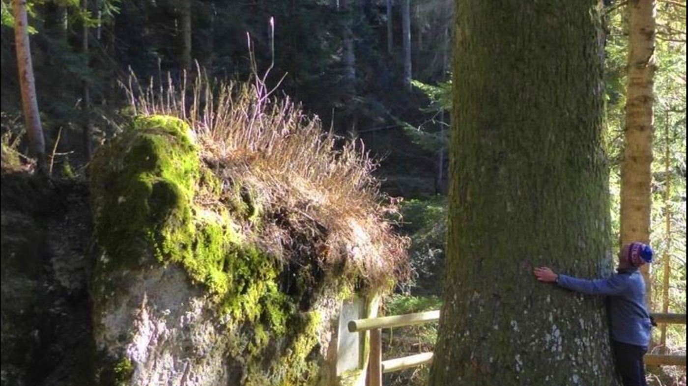 Questo magnifico abete svettava elegante alla ricerca del sole e della luce, godendo di un microclima umido grazie a un piccolo bacino lacustre. Incuriosita, cercai subito delle foto di quell’albero tanto famoso e notai in tutte le immagini la presenza di persone che lo abbracciavano come fosse un amico o un babbo natale.