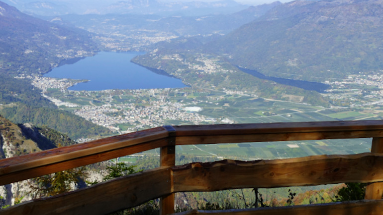 Dopo circa 2,5 km, tra sculture di legno e colori dorati, arrivo al primo punto belvedere che regala una vista imbattibile sul lago di Caldonazzo! In questo punto finisce il Sentiero Respirto degli Alberi e inizia il tragitto che condurrà in cima al Monte Cimone. NB. Per chi cercava la passeggiata, consiglio di tornare lungo lo stesso percorso dell'andata. All'inizio il sentiero è bello largo, poi si restringe e attraversa un breve tratto franato dove il tracciato, sebbene ben presente e sicuro, può dare problemi a chi soffre di vertigini.