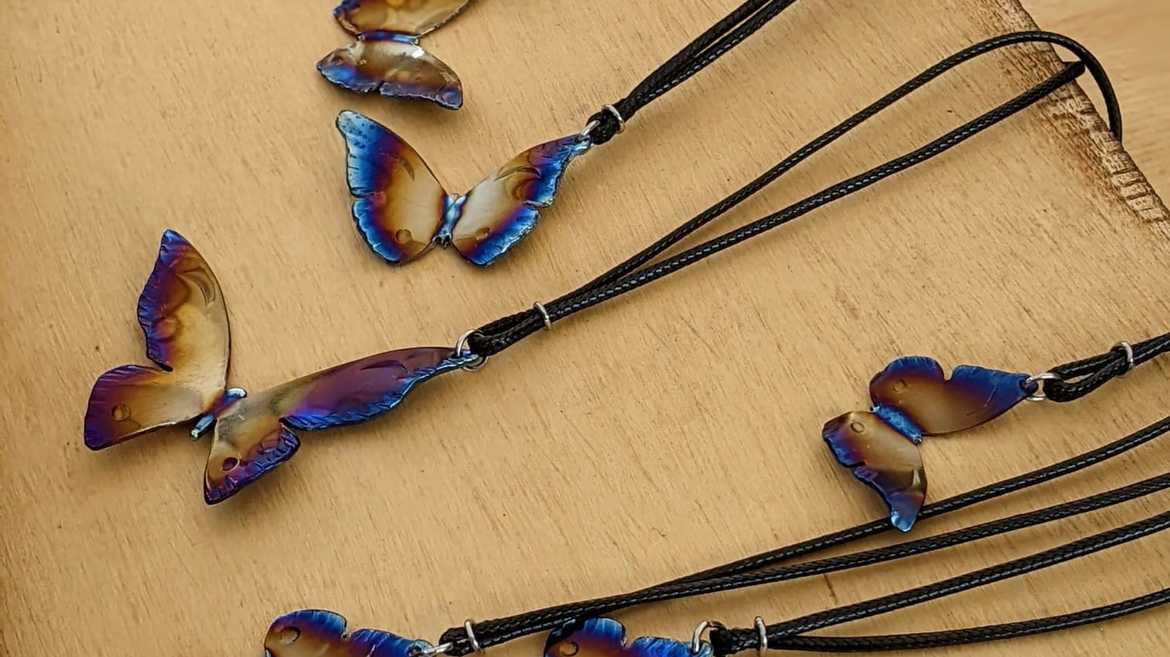 Uso l'Acciaio inox , il Titanio e il Rame mentre il colore l'ottengo con il solo uso delle fuoco e della fiamma. Scaldando il metallo nascono i colori dal suo interno. Possiamo dire che estrapolo il meglio dal metallo, la sua anima, i suoi colori più naturali e più puri possibili, in modo dal tutto naturale.