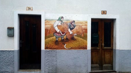 Le strade sono tranquille e tra un'abitazione e l'altra viviamo in prima persona gli attimi di vita di chi ci abita: due anziani che chiacchierano, la fontana in centro paese, un paio di scarponi appoggiati al sole, le legnaie pronte per il prossimo inverno, degli orti e il canto di un gallo. Ammirando poi i dipinti che incontriamo immaginiamo come dev'essere stata la vita qui in passato, con quegli antichi mestieri ormai scomparsi, ma dipinti indelebilmente. Fantastichiamo così sulla casa del falegname, del maniscalco, del postino.. e così via, rendendoci conto di come fossero figure fondamentali nella vita della comunità. Purtroppo oggi queste sono tutte scomparse, soppiantate dalla modernità del fondovalle, lasciando un incredibile vuoto e senso di nostalgia.
