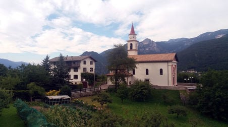 Proprio qui abbiamo fatto la nostra prima sosta, a dir la verità fuori programma. Quel panorama, un'aria frizzantina, una chiesetta di montagna e una malga ci hanno invitato a fermarci.