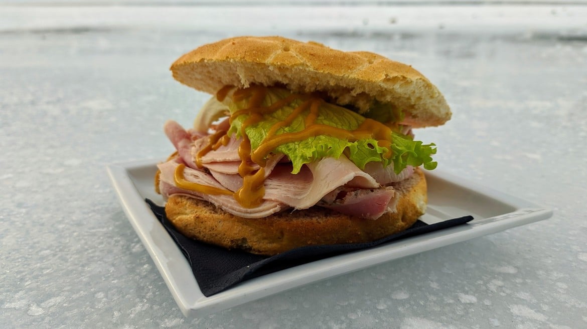 Porchetta, senape al miele, insalata. Ottimo accompagnato da una birra Barbaforte.