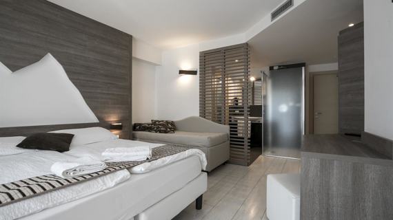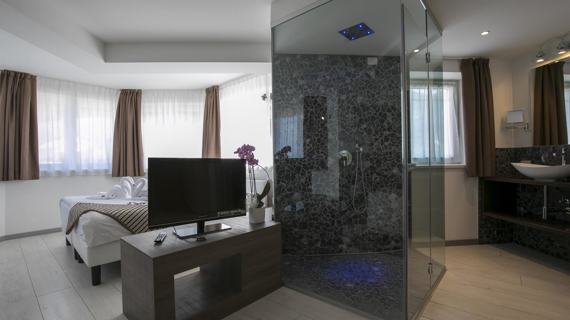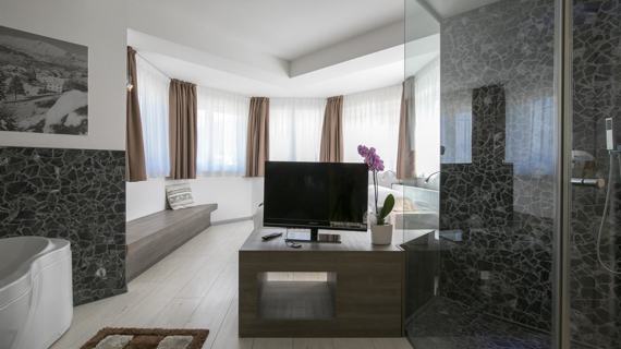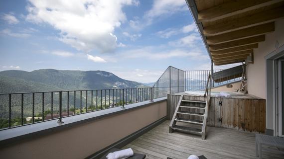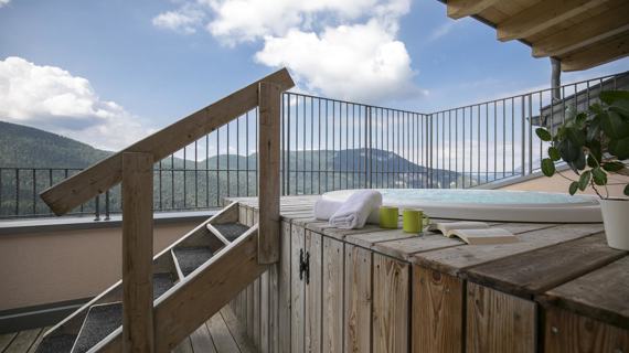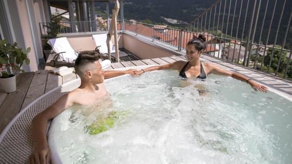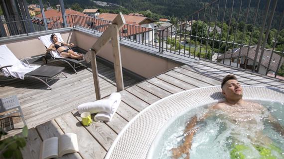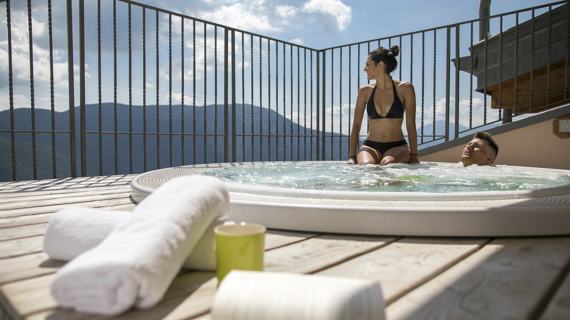 Hotel con area wellness panoramica: bagno turco, docce emozionali, sauna esterna panoramica , idromassaggio esterno panoramico e zone relax.