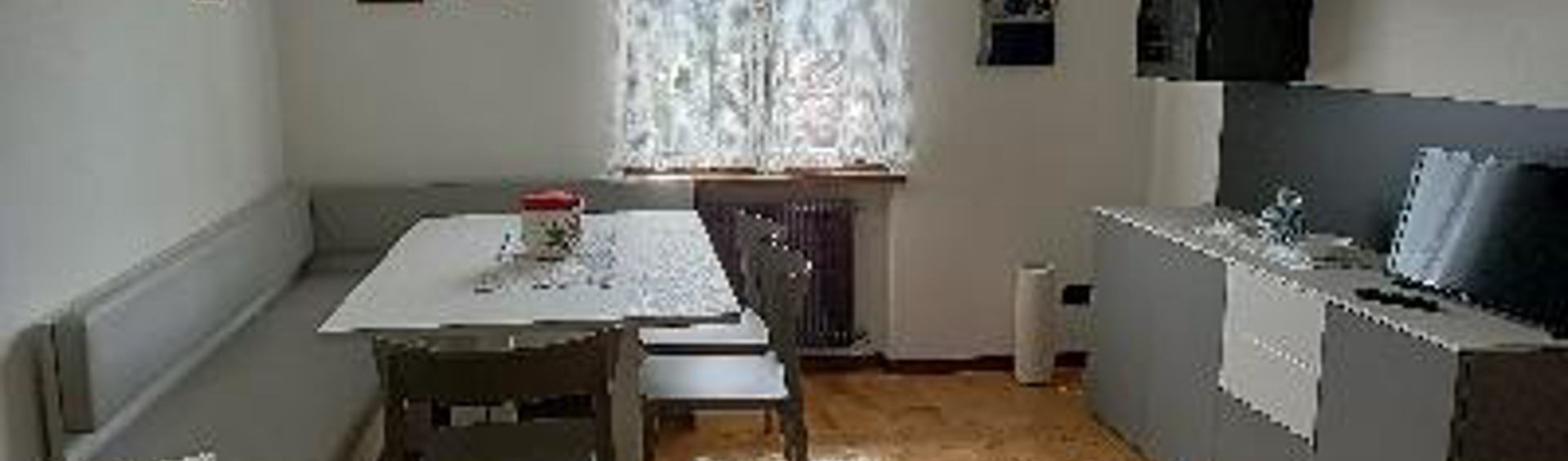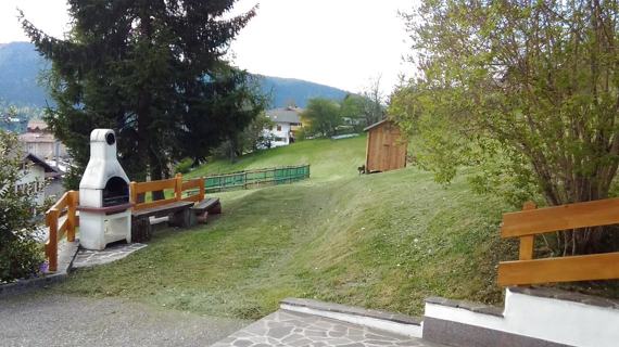 Appartamento accogliente e luminoso a piano rialzato, cucinino dotato di frigo, forno,fuochi e microonde, due stanze da letto, una matrimoniale ed una doppia. Bagno finestrato con vasca e lavatrice. Giardino con caminetto. Posto auto e deposito sci.