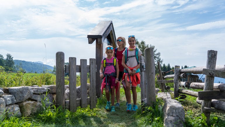 Sculture nel legno e pannelli illustrativi dislocati lungo il percorso raccontano i personaggi che popolano la tradizione locale tra angoli di natura, boschi, pascoli e panorami sulla Val d'Astico.