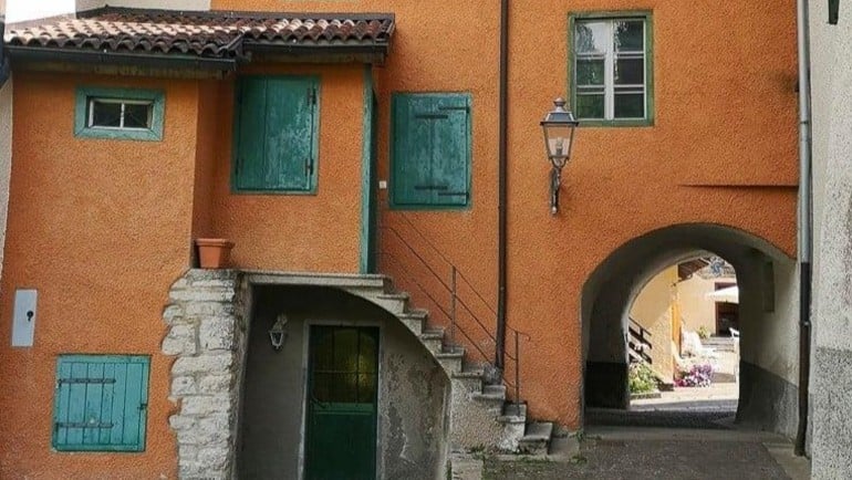 Molte di queste vantano interessanti murales artistici in stile alpino che ricordano il mestiere di chi le ha abitate in passato. Poco a monte di questa curata zona residenziale molto pittoresca, inizia il percorso tematico con alcune caratteristiche fontane, ricalcato sull’antico camminamento usato dagli allevatori che portavano ad abbeverare le mucche.