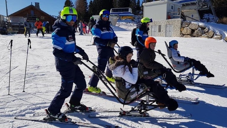 9) Corsi di sci per bambini con disabilità Oggi grazie alla presenza di maestri di sci specializzati per l’insegnamento dello sci a persone con disabilità e la disponibilità di idonei ausili lo sci è veramente uno sport per tutti.