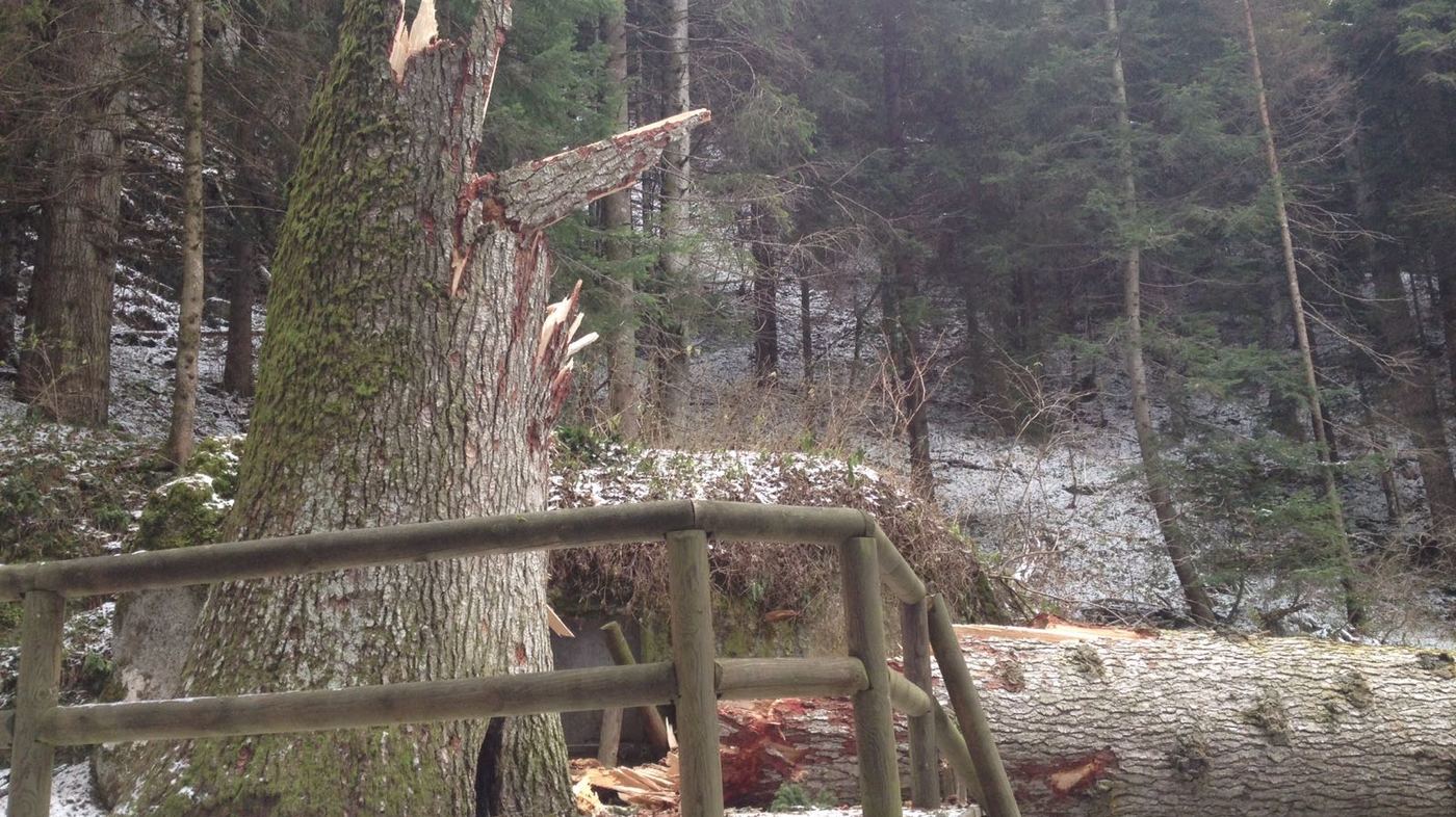 Le radici hanno resistito, il tronco si è spezzato fra i tre e i quattro metri. Trenta metri di fusto, intatti, sono precipitati nella valletta che assieme ad un masso enorme sempre lo aveva protetto dal gelo, sopra il ruscello che gli risparmiava la siccità.