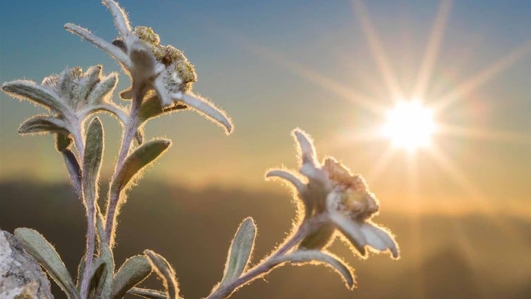 Una volta, tanto tempo fa, una montagnamalata di solitudine piangeva in silenzio.Tutti la guardavano stupiti: i faggi, gli abeti,le querce, i rododendri e le pervinche. Nessunapianta però poteva fare qualcosa, poiché legataalla terra dalle radici. Così neppure un fioresarebbe potuto sbocciare tra le sue rocce.Su dal cielo, se ne accorsero anche le stelle,quando una notte le nuvole erano volate via pergiocare a rimpiattino tra i rami dei pini più alti,una di loro ebbe pietà di quel pianto e senzasperanza scese guizzando dal cielo. Scivolòtra le rocce e i crepacci della montagna, finchési posò stanca sull’orlo di un precipizio. Brrr!!!… Faceva freddo …Era stata proprio pazza per aver lasciato laserena tranquillità del cielo! Il gelo l’avrebbecertamente uccisa… Ma, la montagna corse airipari, grata per quella prova d’amicizia datacol cuore. Avvolse la stella con le sue mani diroccia in una morbida peluria bianca. Quindi,la strinse legandola a sé con radici tenaci… Equando l’alba spuntò, era nata la prima StellaAlpina.