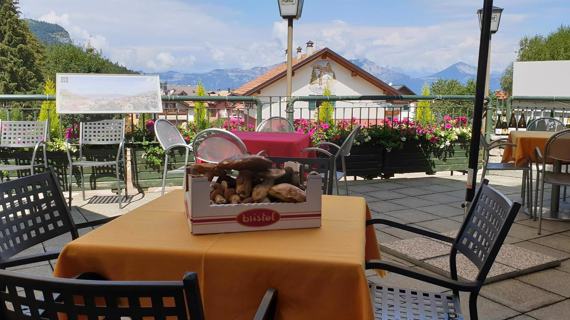 Terrazza panoramica con ristorante, particolare cura viene dedicata alla cucina con proposta di piatti trentini