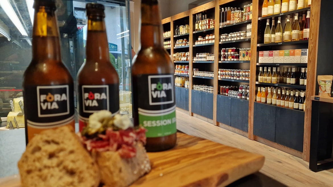 Focaccia lievito madre con il nostro speck, cetrioli all’ olio, vezzena, noci del Bleggio e miele di montagna