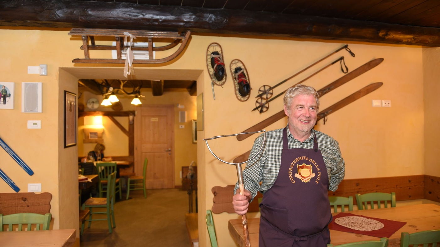 Il battesimo della neo nata Confraternita è stato celebrato dal Gran Maestro Massimo Osele, proprietario del Millegrobbe, che ha illustrato la ricetta brandendo “el mostador", un attrezzo a serpentina sorretto da un lungo manico di betulla, dritto e nodoso, senza il quale è impossibile confezionare una perfetta polenta.