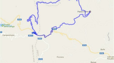 Tornando all'itinerario, dalla località di Ponte Verde imbocchiamo la strada provinciale n°46 in salita ed in un paio di ripidi chilometri rientriamo al passo Pian delle Fugazze.