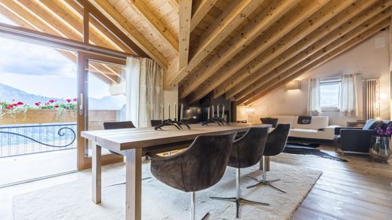 3 stanze da letto matrimoniali, cucina modera e dotata di elettrodomestici di ultima generazione; tre bagni, zona living con caminetto, grande vetrata e terrazza panoramica sulle montagne dell'Alpe Cimbra.Il soggiorno presenta un ampio tavolo da pranzo, perfetto per condividere i pasti con famiglia e amici. Le grandi finestre lasciano entrare molta luce naturale, creando un ambiente accogliente e luminoso.La zona notte è composta da un bagno con doccia, una camera matrimoniale accogliente e una suite matrimoniale con una spaziosa cabina armadio e un bagno privato. Al piano sottotetto, una confortevole camera matrimoniale con area relax ti offre un rifugio perfetto per rigenerarti dopo una giornata sulle piste.