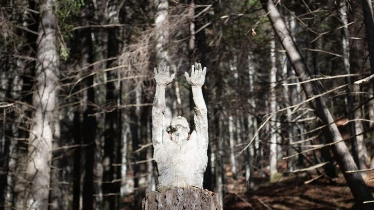 L’albero si eleva verso l’alto: in un atto attraverso cui l’uomo raggiunge il cielo. Le mani rivolte all’insù, punto più alto della figura umana, rappresentano, in Verso la luce di Alessandro Pavone, la spinta vitale. L’albero eleva l’uomo e il suo pensiero verso il cielo; lo sguardo dell’uomo si inerpica tra i rami e si libera nel cielo. E il corpo umano scolpito nel tronco di cedro rivela di essere fatto della stessa sostanza dell’albero. A guidare il visitatore all’interno del bosco che sa di mistero, un cavallo, Sleipnir. L’opera dell’artista Duilio Forte è ispirata al leggendario cavallo di Odino, ritenuto, nella mitologia scandinava, il miglior cavallo che esista.