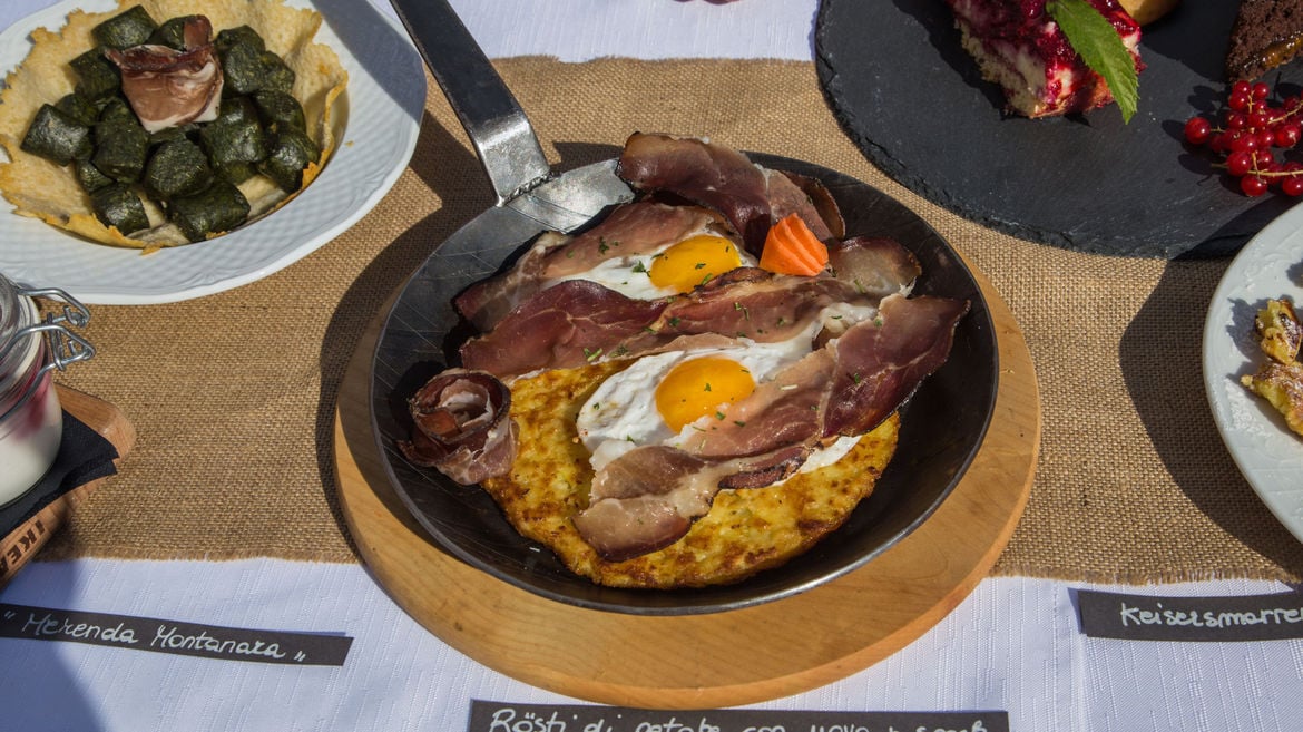 - Antipasto del rifugio: ricottina fresca con miele e noci, misticanza di insalata con Trentigrana e speck
