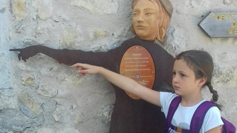 Oggi ci spostiamo a Luserna per percorrere un sentiero dal grande attrattivo storico e culturale realizzato in un contesto paesaggistico che vede alternarsi pascoli e fitti boschi di abeti. Lungo questo sentiero incontreremo varie installazioni (quasi 50, alcune delle quali sono collocate fuori e dentro il Forte Lusern) in metallo con dettagli in terracotta che ci narreranno la loro storia dal 1908 fino agli anni del dopoguerra della Seconda Guerra Mondiale. Un percorso che affascinerà per gli scorci che ci regala, ma, soprattutto, per questo spaccato di storia presentato attraverso l'esperienza diretta di alcuni cittadini del paese. Un sentiero che affascinerà i vostri figli interessati alla storia, soprattutto i ragazzi più grandi che capiranno cosa è successo a metà del Novecento in queste montagne, un percorso che vi riempirà di emozioni per non dimenticare.