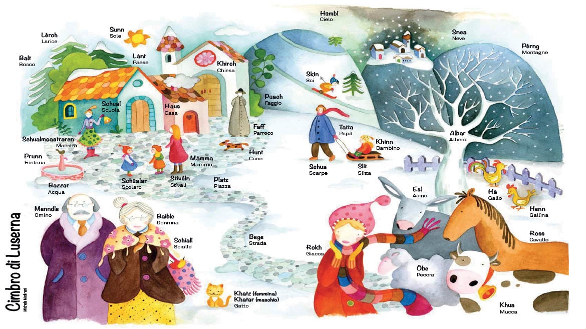 È un antico dialetto tedesco portato sull’ altopiano di Lusérn attorno all’anno mille da coloni bavaresi che in varie ondate migratorie hanno abbandonato le loro terre in cerca di nuovi territori da colonizzare.Il periodo di massima estensione della lingua cimbra si ebbe all’inizio del 1700; Lusérn è rimasta oggi ultimo baluardo della parlata cimbra, della cultura e delle tradizioni ad essa correlata.