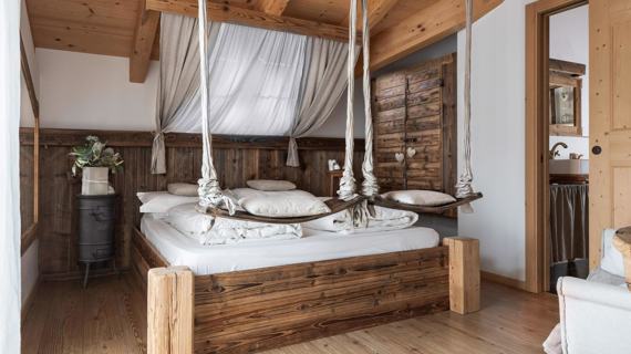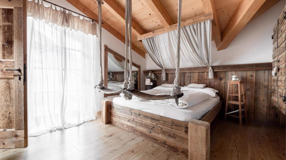 Six room all to discover, each furnished whith one particolar style, for a stay rich in emotions: small and cozy mountain nests to live emotion and the sense of freedom of swing, the intimacy of a canopy bed, the relaxation and the sweet sensation of a scented bath.